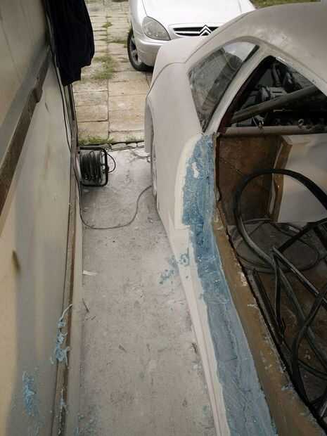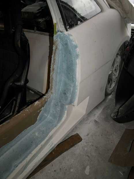 Luego pongo el pegamento sobre la espuma de poliestireno en forma de espuma, donde impresionó la forma interna de las puertas.