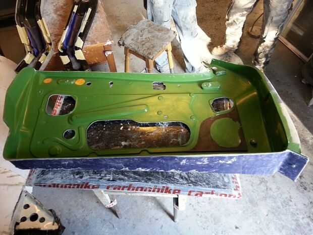 Durante este tiempo también siguió con la mirada de fondos para la construcción posterior del prototipo, así como que estaba supervisando obras en la primera listos elementos de la carrocería de fibra de vidrio. Estas son las partes internas de las puertas que fueron fabricadas en www.carbonbike.pl, que se ocupa de la fabricación de los handbikes más ligero del mundo y carrocerías de coches diferentes de fibras de carbono. Por debajo son fotos de formas y primer elemento del prototipo de la carrocería.