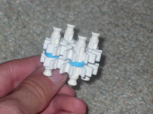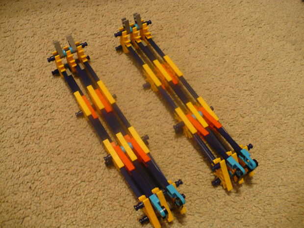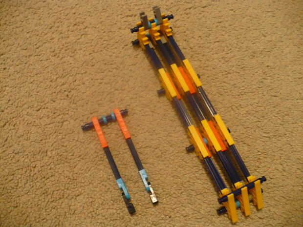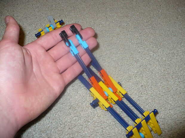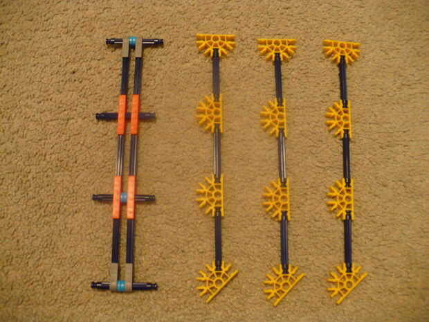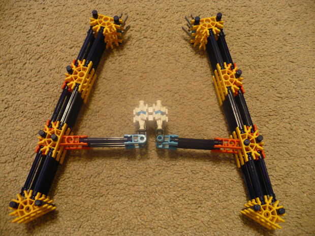 12. Conecte las barras blancas a los extremos de los conectores de empalme en las dos piernas hechas como así.
