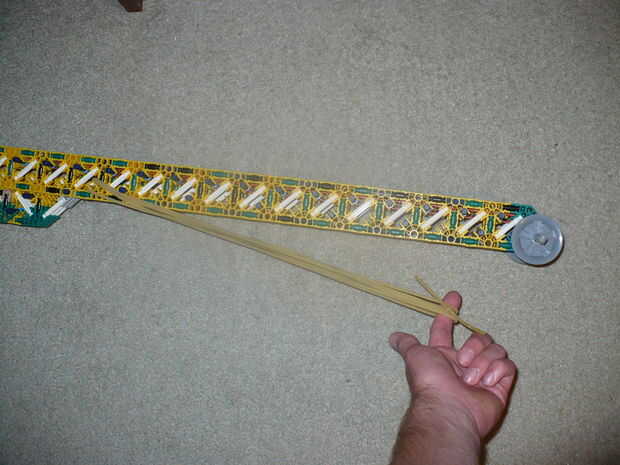 8. ahora, la polla completamente, tire de nuevo todo el camino por el cañón y engánchelo en el copo de nieve al final. El copo de nieve no girará hacia adelante hasta que el gatillo y, por tanto, las gomas de la tubería/de goma/elástico será liberado cuando se tira del gatillo.