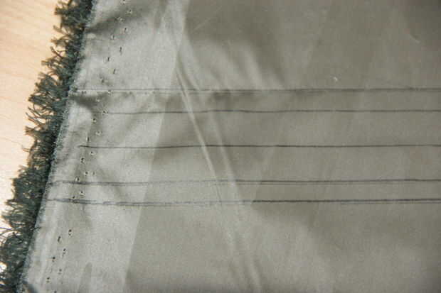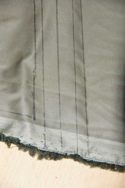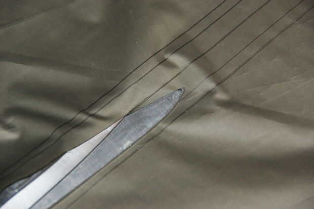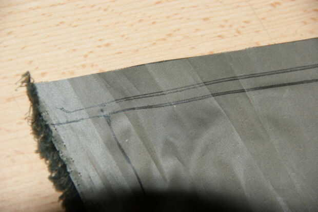 En cada línea exacta del triángulo añadir 5 mm + 10 mm para el traslapo a cosen "Francés". Esto también fue utilizada donde quiera es necesario para ampliar o agregar tela así.