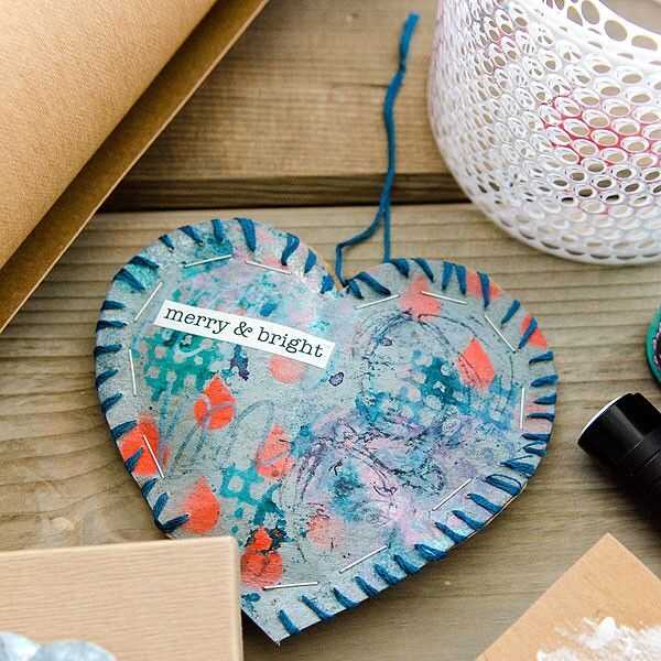 Para mayor estabilidad y un aspecto más vanguardista, engrape el perímetro del corazón. Añadir un poco de seda del bordado para colgar.