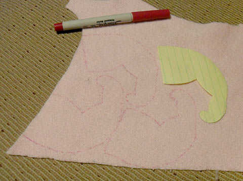 Corte el patrón y traza en tu juego polar rosa. Recuerda hacer 2 frentes y 2 respaldos (voltear la pieza). Prender juntos y coser a mano.