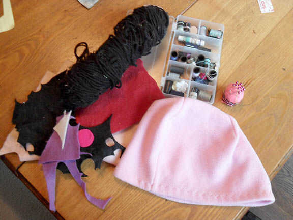 Puede comprar un gorro de lana rosa o hacer uno. Lo que es bastante simple si usted tiene una máquina de coser y hay muchos patrones gratis y tutoriales disponibles en línea.