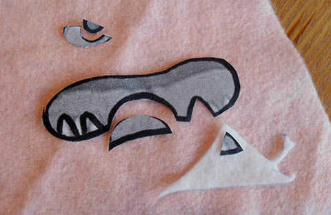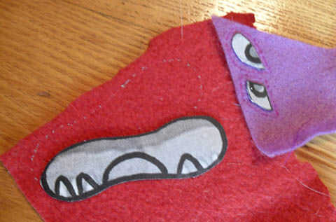 Quite los globos oculares de su hoja de patrón principal. Cuando se traza sobre el fieltro lavanda, Dése un poco extra todo el camino alrededor del borde. Esto asegurará que no quedan huecos entre el piezas de colores y el hilo de "líneas".
