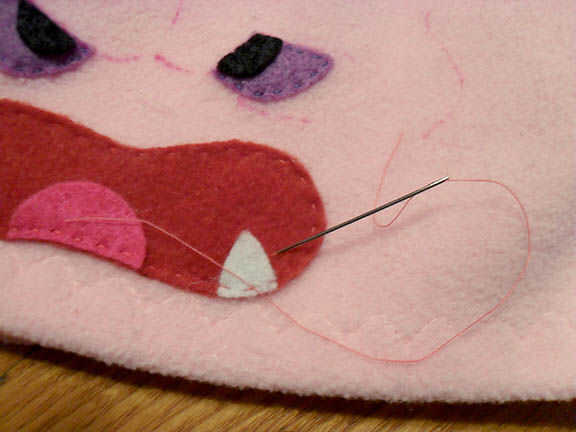 PERO... no conduzca usted mismo las tuercas de cada pequeña cosa de costura. Usé pegamento para tela para los cachitos, como los dientes y de los alumnos.