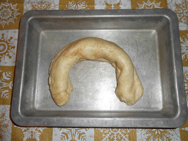 Dóblela e introdúzcala en una cuerda y forma la masa en una herradura.