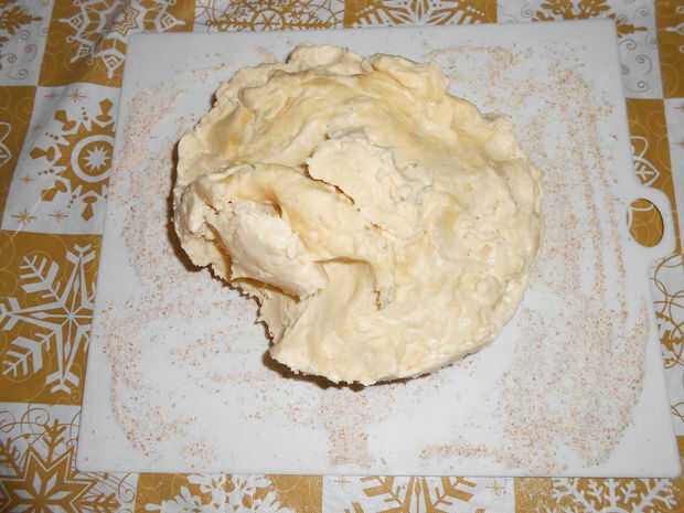 Tomar la masa y ponerla sobre una superficie ligeramente enharinada.