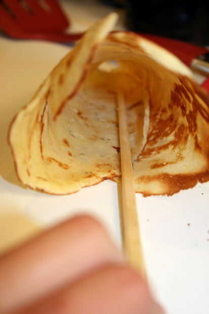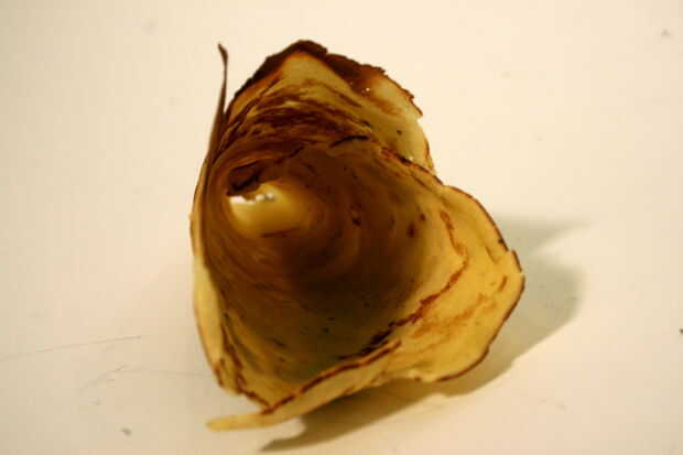 Como se enfría el krumkake, que endurecerse y llevar a cabo su forma.