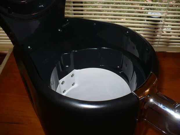 Una vez que me di cuenta de donde quería ponerlo, perforé a un piloto con mi 1/8" ya que no quería romper el plástico yendo a grande para rápido. Luego usé el 7/32", que es apenas lo suficientemente grande como para jam su aire de línea, sin embargo desde que tuve a mi taladro de ángulo, necesitaba utilizar el 1/4" para ensanchar el agujero exterior para recuperar la línea. Esto es donde un taladro de ángulo recto habría sido realmente genial.