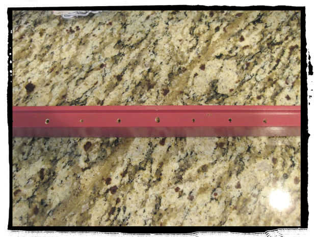 A continuación marcada y mis agujeros perforados. Más espaciadas cada 1,5 pulgadas, algunas que hice en 2 pulgadas (para los collares de gruesas). Perforó los agujeros con mi dremel. No eres bonitas, me tardé unos agujeros para darse cuenta que necesitaba poner la broca en mi marca y luego encienda. Si ya lo tuviera activado, sólo skitter y bailar en el lugar. Entonces atornilla los ganchos en los orificios (cogí un paquete de pienso 50 ganchos en Walmart por $3). Mis agujeros estaban un poco demasiado grandes para la parte del tornillo de gancho, pero no era nada que no fijar una gota de E6000. Lo reconozco, necesito más paciencia con mis manualidades y debería haber esperado para que los taladros a cargar así que podía usar la broca de tamaño correcto, pero hacerlo funcionar.