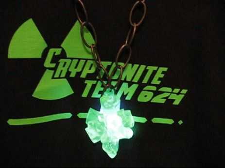 Este brillante cristal Kryptonite fue un proyecto de mi hijo y el equipo de robótica de la escuela de sobrino, Cryptonita equipo 624 de Cinco Ranch. (Equipo Cryptonita fue nombrado originalmente para luchar contra a un rival que usa el logo de Superman).
