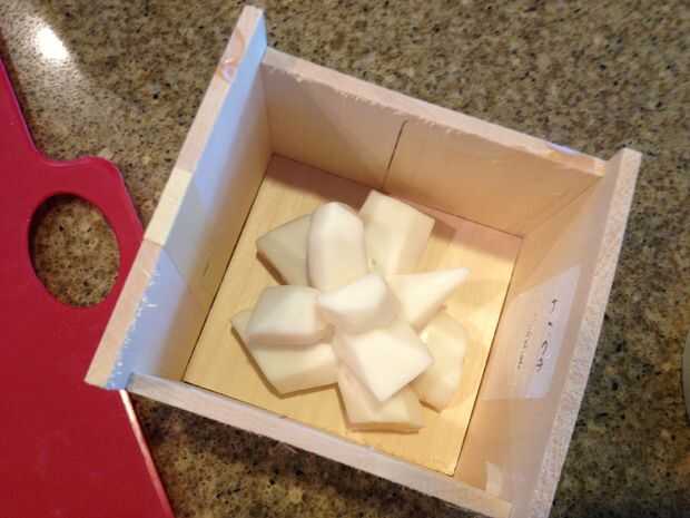 Grabado el cuadro detrás juntos después de quitar porque quería mantener la caja de para futuros vierte. El cuadro también hace un buen lugar para almacenar el molde de silicona.