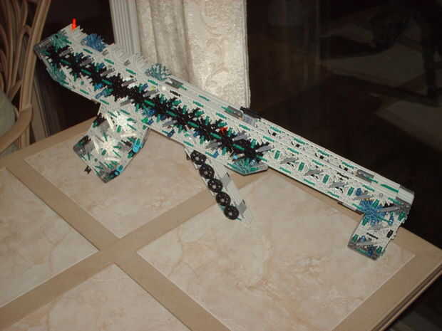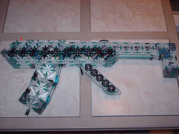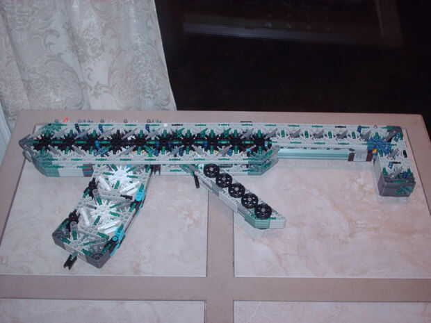 Uno de los más notables es el mag curvado. Tiene un pasador de bloqueo que mantiene en su lugar y la función estándar de carga. Una de las cosas que no he visto antes es la guía de ram. En lugar de recorte en, utiliza clips tan y se encuentra en los pequeños orificios. También tiene un riel para un alcance y un trasero con textura. Una cosa que todo el mundo ha pedido a mí, es usar un nuevo desencadenador. Así lo hice. Básicamente tiene dos conectores en forma de engranaje.