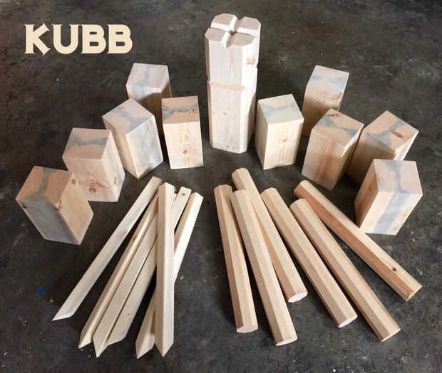 Kubb (también conocido como ajedrez vikingo) es un divertido juego en el que lanzan porras en bloques de madera al aire libre: