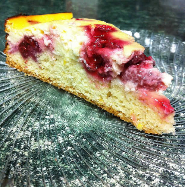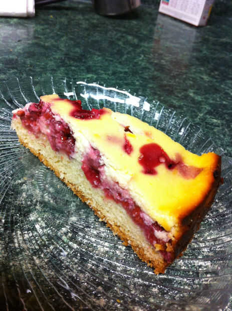 Colocar unas fresas en el plato junto al kuchen, si así lo desea.