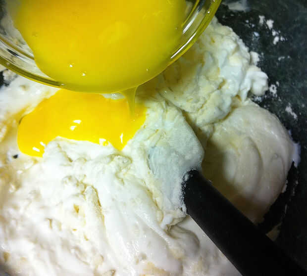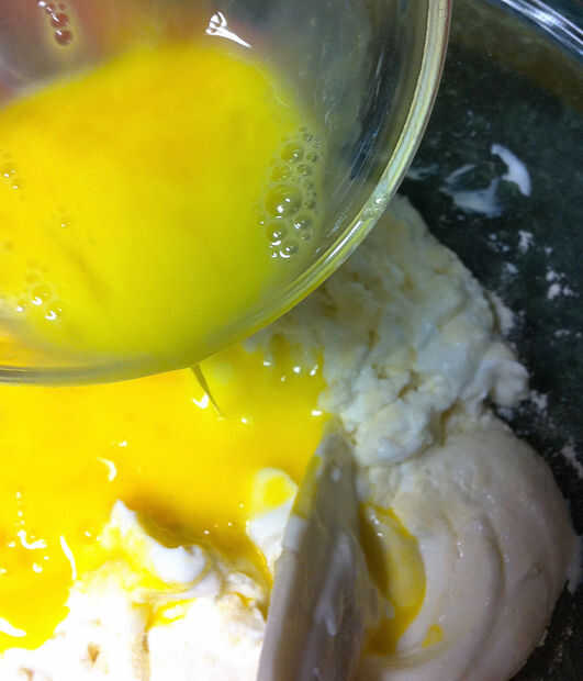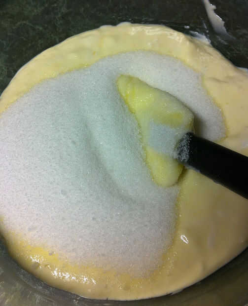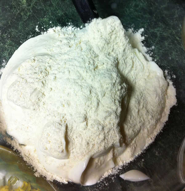 la harina en la parte superior, suavemente batir o mezclar, luego añadir los ingredientes restantes.