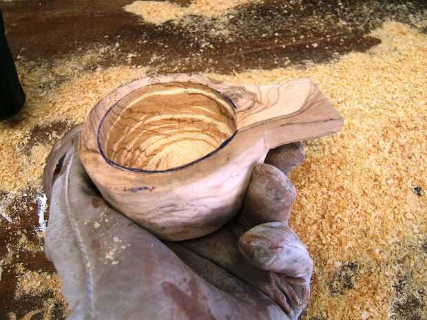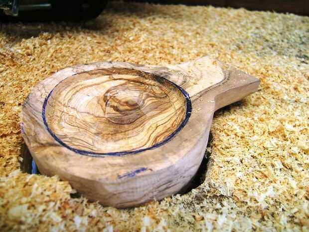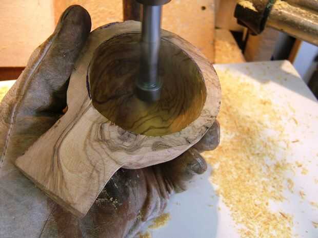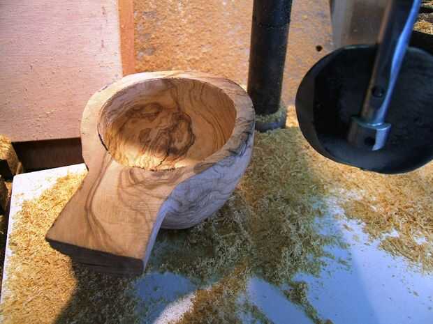 Carver perezoso hizo un gran trabajo. Fija al taladro de columna y el giro a gran velocidad tomó sólo 10 minutos a tallar un cuenco casi perfecto.