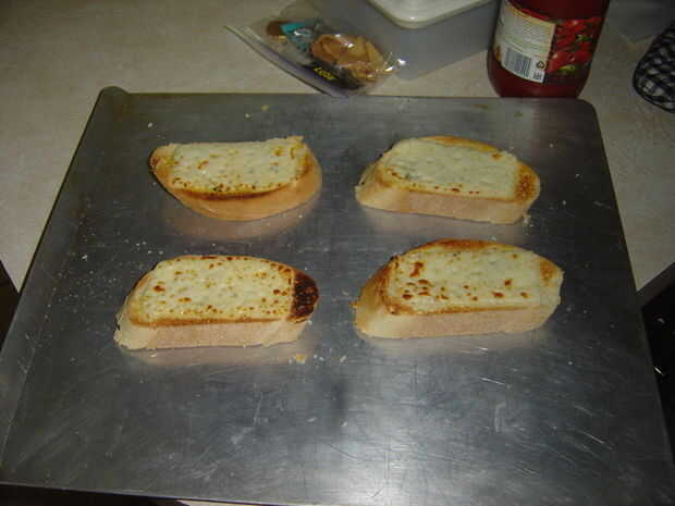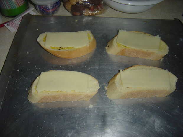Cortar la mozzarella lonchas de queso para el segmento cubre el pedazo de pan y luego les asar hasta que el queso empiece a burbujear (si te gustan suaves). Si quieres un poco más crujiente, espere hasta que el queso empiece a dorarse.