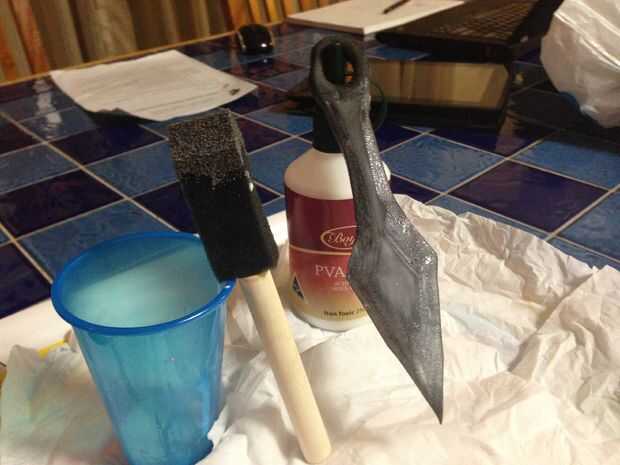 A continuación necesitará aplicar pegamento PVA a la Kunai con un pincel de punta de espuma. A continuación dejamos unos 45 minutos.