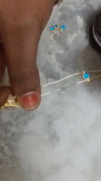 -En la capa superior Inserte el cordón de color oro y azul bolas de Kundan alternativamente. Kundan grano contienen 2 orificios en su parte superior e inferior. Inserte el grano americano a través de su orificio superior