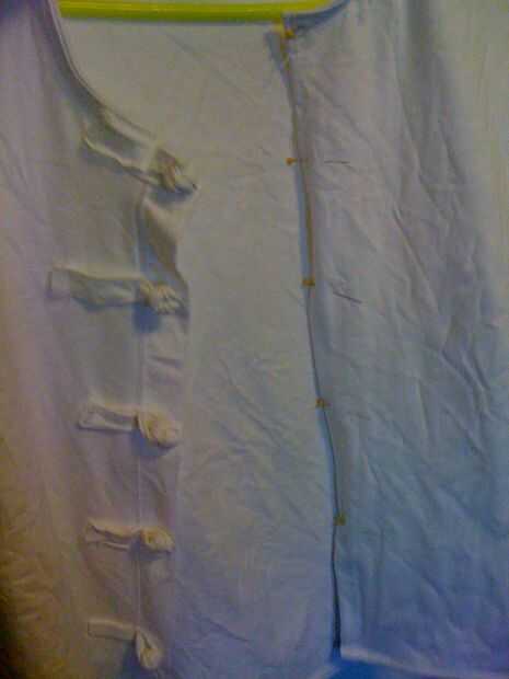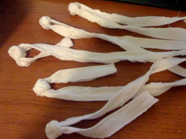 Foto 2: Nudo terminado. Siga estas instrucciones: www.stellaceleste.com/htm/knots/buttonknot.htm hacer tantos botones que usted necesita. Tenga cuidado al apretar los botones, si utilizas material de la camiseta, se rasgan si tira duro, ser muy suave.