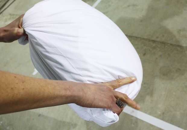 Toma tu almohada con ambas manos, conseguir un buen agarre y manténgalo estrecha.