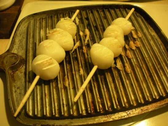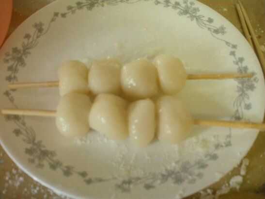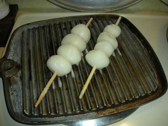 Cuando la plancha esté caliente ligeramente la parrilla el dango en ambos lados.
