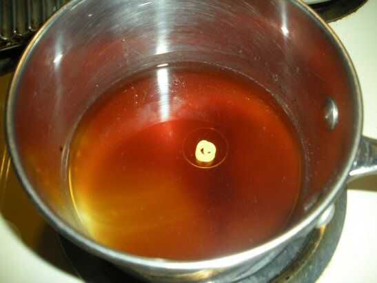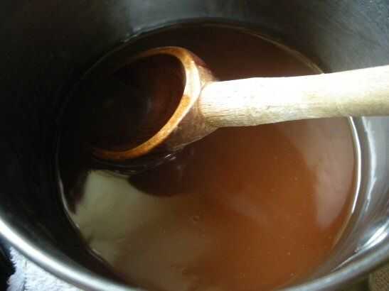 Añadir la medida grande de salsa de soja, el azúcar y el agua a la cacerola pequeña.
