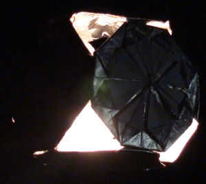 Nos trasladamos hacia abajo a la cocina, comía un sandwich y estaba parado junto a la chimenea (aquel que arruinó mi reloj antiguo) fui inspirado por el fuego y le pidió a mi amigo si tenía cualquier partidos disponibles por lo que podríamos incorporar fuego con el origami, le gustaba la idea pero ya era hora de la cama así que tuvimos que abandonar la idea pronto.
