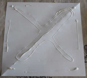 Puso el pegamento en el papel y los laicos cuidadosamente la lámina en la parte superior, asegúrese de que hay no hay burbujas en el papel.