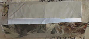 Doblar los bordes superior e inferior hacia el centro, haciendo pliegues de barrio como se muestra en la primera foto.