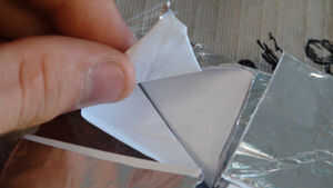 Pliegue el borde en foco al centro de la plaza como se muestra en la primera foto.