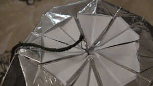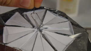 F quiere colgar el Kusudama en algún lugar se necesita el clip, un lado de la curva por lo que parece una foto y hágale un agujero en el centro como se muestra, hacer demandarlo es limpio de lo contrario podría convertir - si no es limpio se puede tener otra oportunidad en una de las cinco caras restantes, no notan los pequeños agujeros.