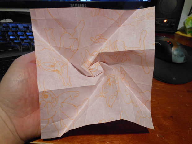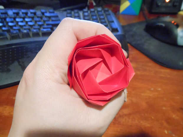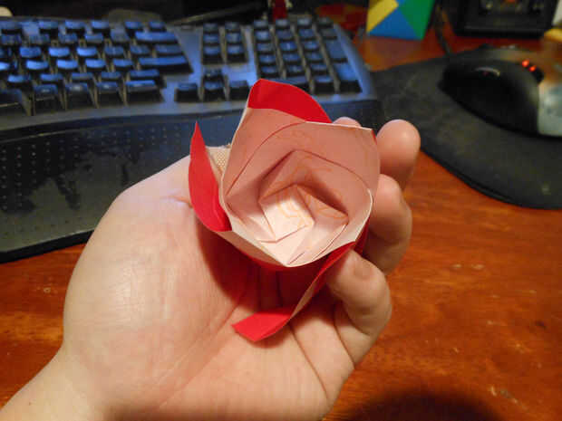 OK, ahora es donde empezamos a hacer la forma de la rosa. Realizar cuidadosamente los pliegues de la imagen. He añadido dos fotos de cómo deberían parecerse a los pliegues.