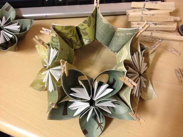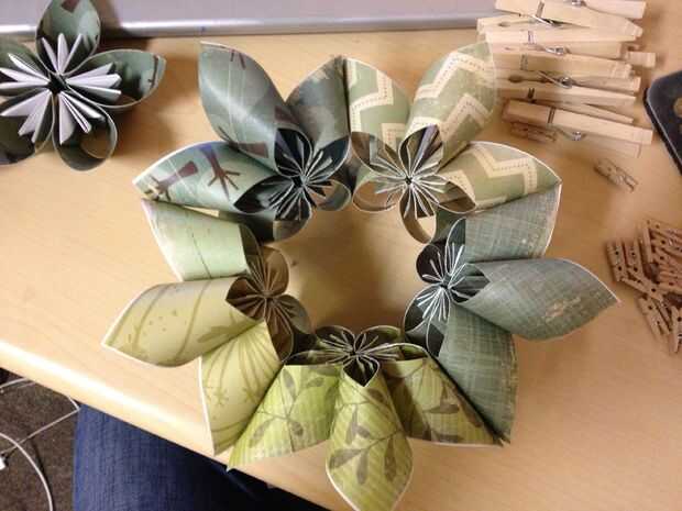 Para preparar la flor, arreglé flores individuales juntos en un círculo con pétalos junto con pinzas para la ropa artesanal.