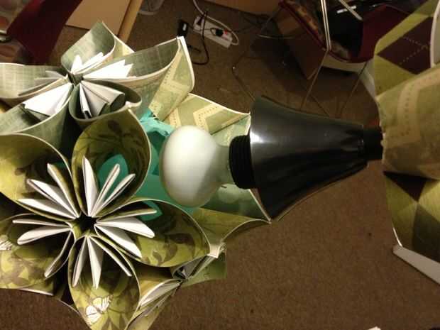 Desliza la bola kusudama base sobre la luz (otra vez, asegúrese de usar una luz LED que producen menos calor) bulbo y cubrió la flor superior a la base.