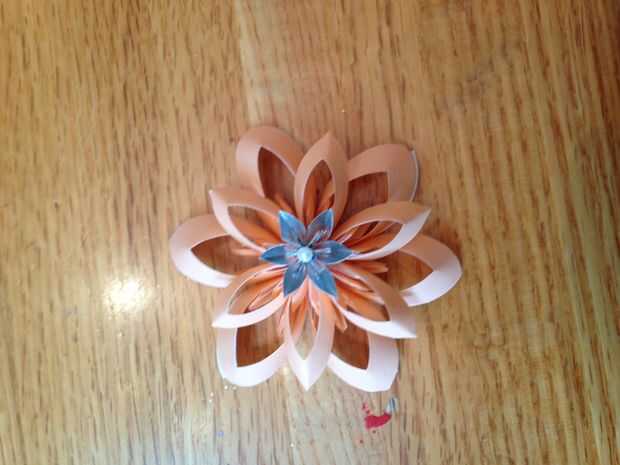Cosas interesantes sobre los pétalos de varias flores de diferentes tamaños, de seccionamiento es que usted puede organizar en innumerables maneras para diverso efecto. Por ejemplo, en las fotos anteriores, yo capas las diferentes flores tamaño encima de la otra, primero con la flor hacia la mesa y la segunda con la flor hacia arriba. Puede unir diferentes tamaños al lado así, o conectar de otra manera.