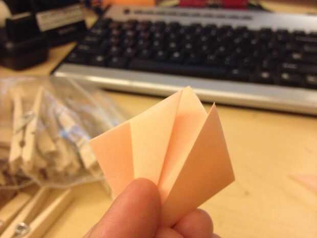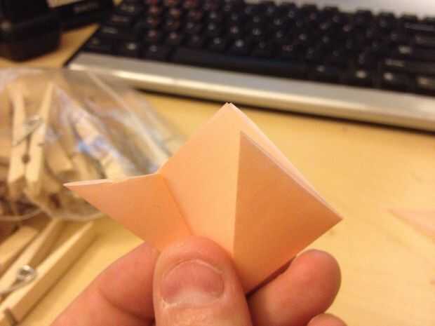 Doblar la parte superior las aletas hacia afuera a cada lado. El despliegue. Esto se hizo sólo para crear una línea de pliegue.