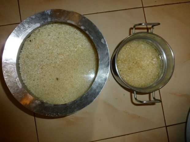 Lavar y limpiar el arroz empapado y lenteja negra y molerlos por separado en un molinillo de la batidora hasta obtener una pasta. La masa de la tierra entonces es quitada de la amoladora y mantenida durante la noche en un lugar cálido. Esto permitirá que la masa a fermentar naturalmente a un sabor requerido.