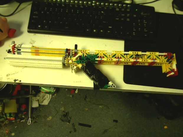 'No un rectángulo'. Llame a mina 'Desenredar el'. Qué ooda hizo fue en una pequeña pieza en el frente para dejar el pin de ir a la fecha. Ahora usted puede poner tantas bandas como quieras sin miedo a que el arma va a explotar. OODA pone 8. Pongo 10. Disparé una barra roja en un pedazo de 1/4" de pino. La barra de ganado. Todos van a construir. No como objetivo en el yeso o los seres queridos. No disparar oodammo duro. Que te diviertas.