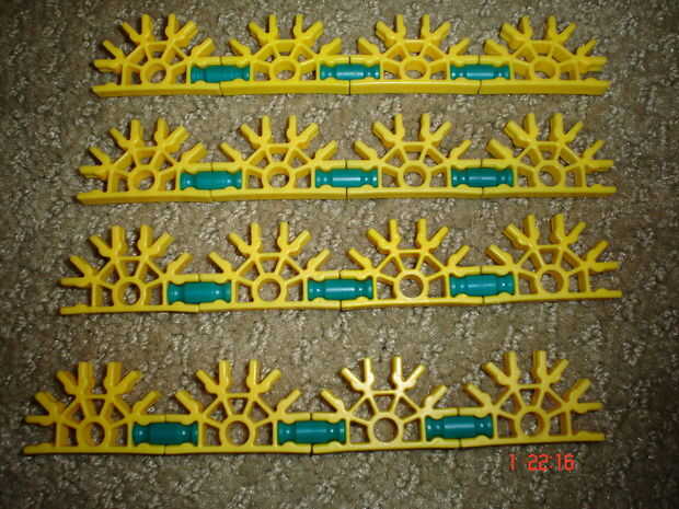 tomar 3 blancos y 1 azul y coloque como se muestra