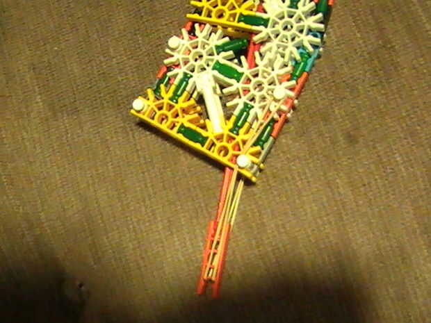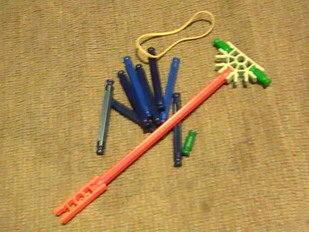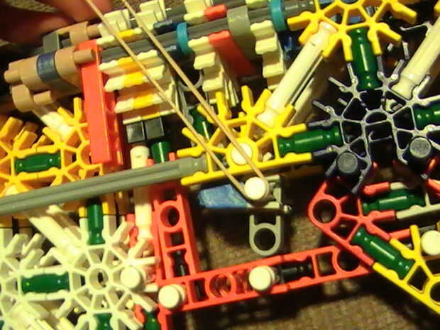1. Ponga una banda de caucho aquí y traer alrededor al otro lado de esta barra blanca. O supongo que si quiere podría utilizar una banda de caucho trenzada doble más corto y ponerlo en los amarillos luego envuélvalo en el gatillo.