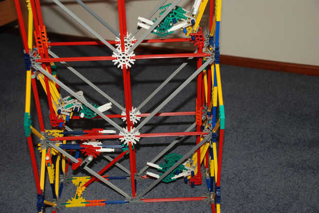 18 - fijar el brazo en la sección de torre construida en el último paso.