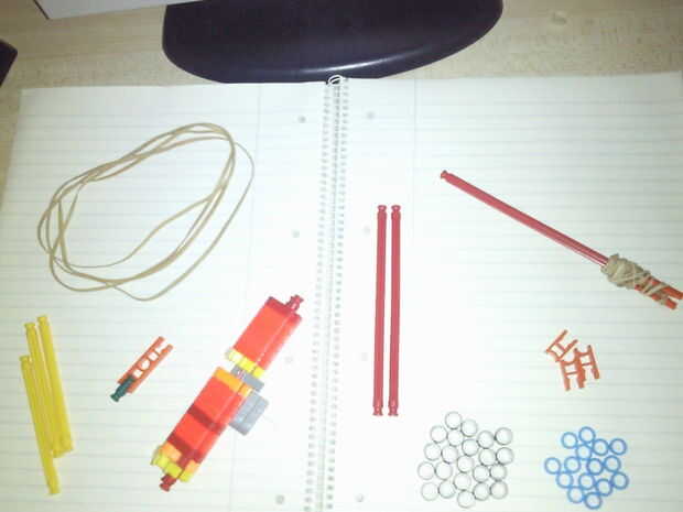 es un arma de simple KVG con desencadenar nuevos lo siento por pequeñas fotos usé mi teléfonoPaso 1: barril acaba de poner conectores rojo 11 en una barra rojaPaso 2: gatillo hacer este 2 conectores naranja sobre una barra blancaPaso 3: manejar! sin