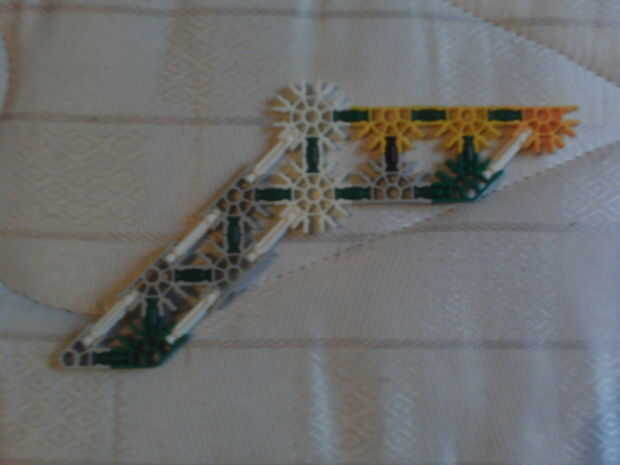 este es mi nuevo arco y flecha dispara unos 15-30 pies esperan que les guste.Paso 1: Reunir los materiales.Barras: 38 verde pequeño o negro, amarillo 10, azul 2, blanco 20.Conectores: 32 morado o plata, 4 azules, naranja 2, 8 amarillo o gris, 2 blanc