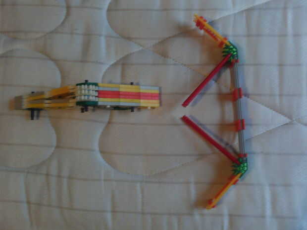 este es mi nuevo arco y flecha dispara unos 15-30 pies esperan que les guste.Paso 1: Reunir los materiales.Barras: 38 verde pequeño o negro, amarillo 10, azul 2, blanco 20.Conectores: 32 morado o plata, 4 azules, naranja 2, 8 amarillo o gris, 2 blanc