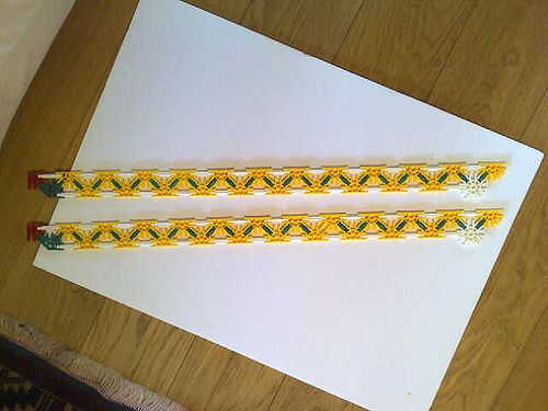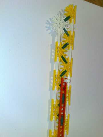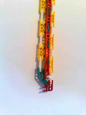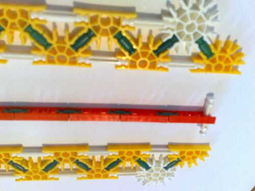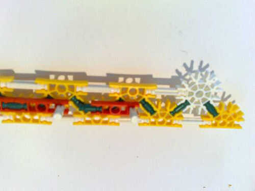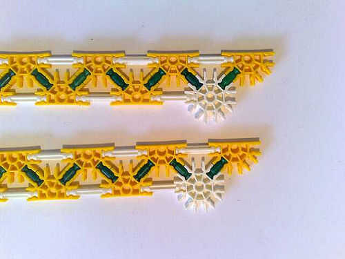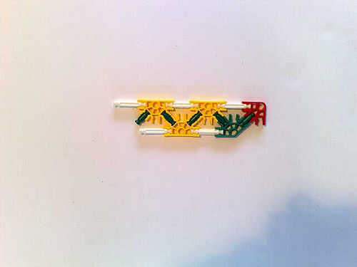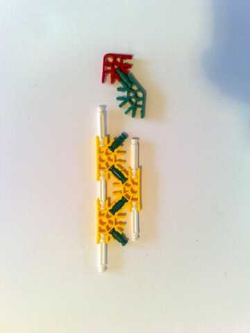 Foto 4/5/6/7 realizar la longitud conector naranja de la broca verde en la parte delantera en el medio círculo de fondo amarillo que es un medio círculo del blanco el círculo completo. Luego, conecte a un lado del cañón usando las barras blancas.