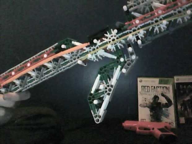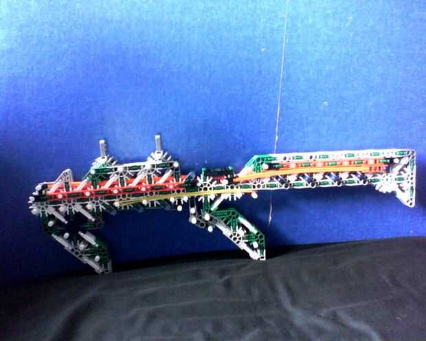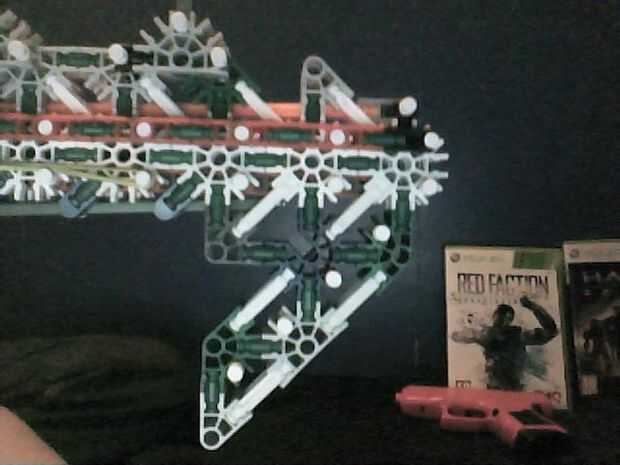 pepinos Hola a todos compañeros Knexers y los recién llegados. mi nuevo disparo, rifle de largo alcance KVG, con alcance real, bípode plegable, verdadero gatillo, cualquier shooter munición, 1,20 m de altura, 110 pies gama con oodammo (conector rojo
