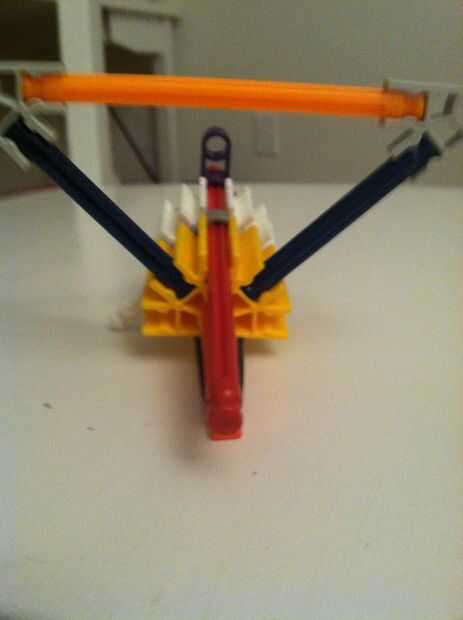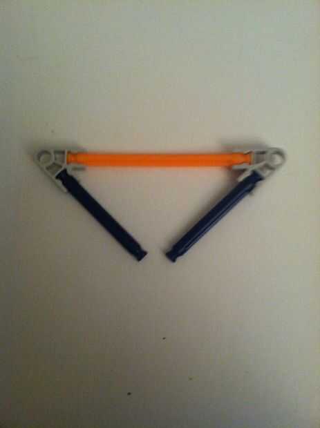 Tomar sus dos barras azul y conéctelos a los conectores gris a doble espacio y a su barra naranja. Ahora conectarse el conector amarillo en el cañón principal.